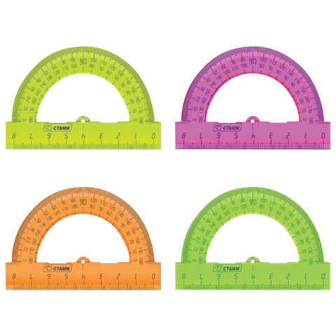 Транспортир предназначен для чертежных работ. Изготовлен из сертифицированного полистирола, имеет ровную четкую миллиметровую шкалу. Транспортир - 180°.