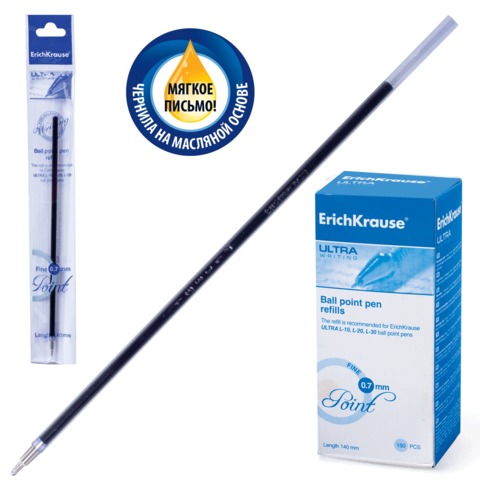 Упаковка: 150 шт. Качественный стержень на масляной основе с наконечником игольчатого типа предназначен для шариковых ручек. Цвет чернил - синий.