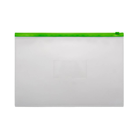 Папка на молнии сбоку горизонтальной ориентации формата A4+. Толщина пластика: 0,15 мм. Цвет молнии: зеленый.