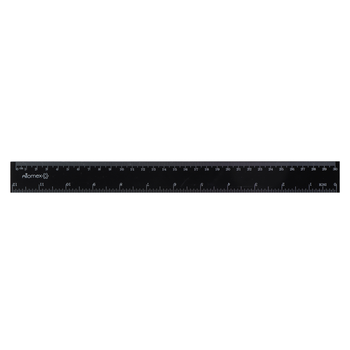 Линейка из черного прочного пластика. Длина шкалы составляет 30 см. Линейка обладает четкой разметкой, что делает ее удобной в использовании. Имеет двойную градацию шкалы (сантиметр, дюйм). Устойчива к деформации.