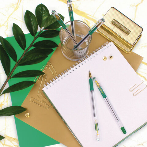 Ручка шариковая масляная, с резиновым упором 0,5мм MunHwa MC Gold BMC-04 ЗЕЛЕНАЯ, прозрачный корпус, 142778