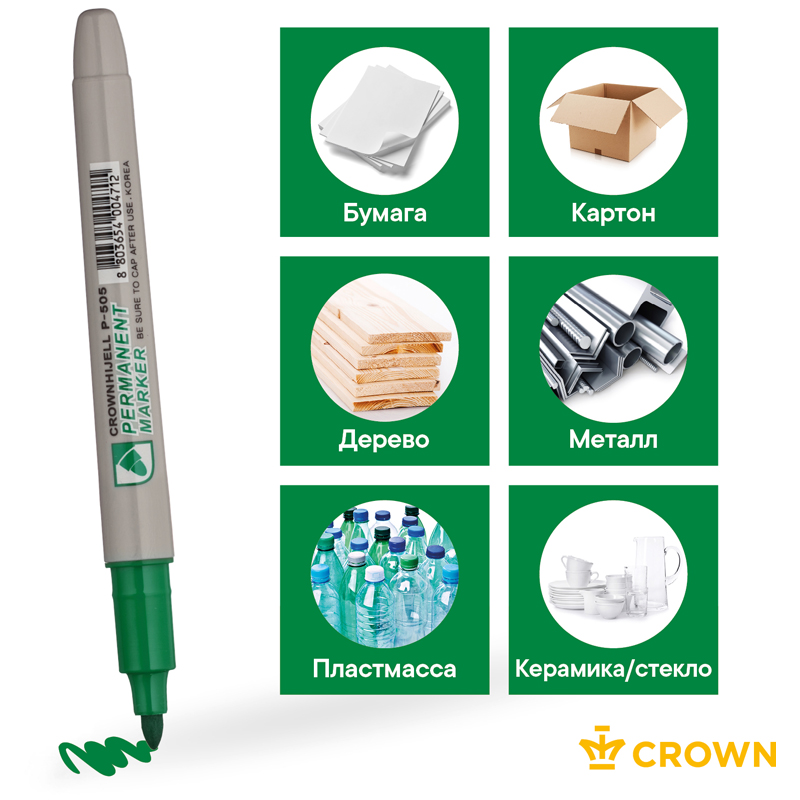 Нестираемый перманентный маркер CROWN "Multi Marker Slim" отлично пишет на любых поверхностях и под любым углом. Применяется в самых различных отраслях, отлично подходит для долговечной маркировки.