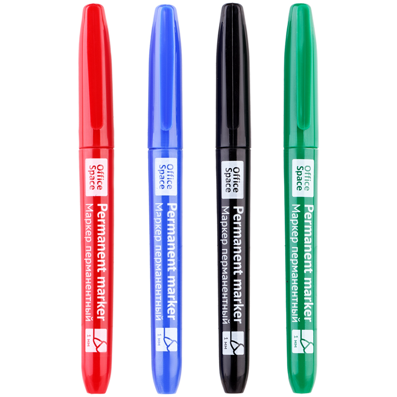 Набор маркеров перманентных OfficeSpace 1-3мм, 4шт (черный, синий, красный, зеленый), 319931